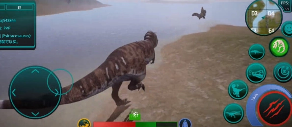 3、在左上角设有视角聊天功能,借助该功能,你能够与其他玩家展开交流互动,体验别具一格的恐龙模拟历程。