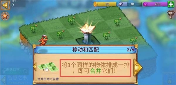 2、阅读游戏提示合并巨龙,将三个石像合并在一起,横竖或者堆在一起都可以,只要连接上了就行。