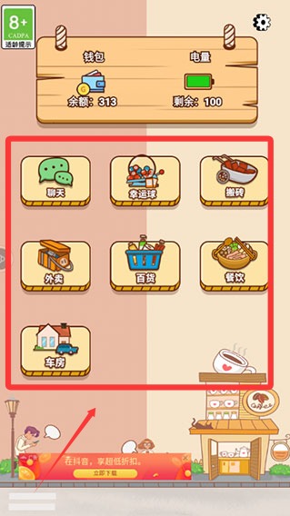 2、游戏围绕“现实人生”的模拟展开,将搬砖、送外卖、逛百货、做餐饮等都市元素融入多个互动模块,全面呈现当代生活的五味杂陈。