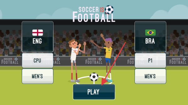 1选择英格兰队(ENG)或巴西队,设定ENG为CPU控制,BRA为玩家1,然后点击【PLAY】开始足球比赛,享受对战的乐趣。