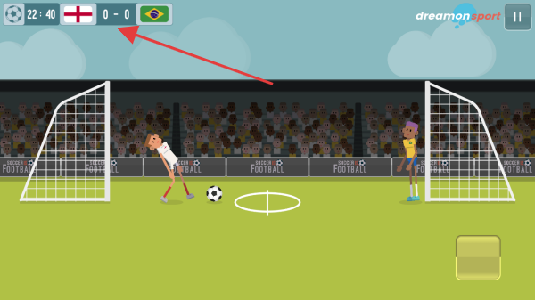 3、当球接近球门时,控制球员进行射门,避开守门员的封堵,充分利用场地的空间,在22:40的时候抓住机会打破0-0的僵局取得进球。