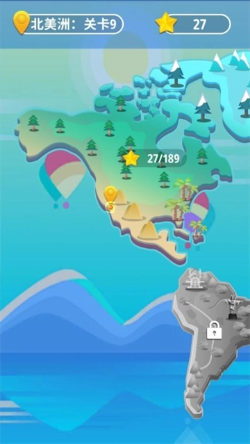 1. 开启应用,于【北美洲:关卡9】地图中,选择相应区域进入消除关卡。