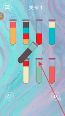 1、简约操作设计:只需点击试管即可完成液体倾倒,没有复杂的操作步骤,新手能够迅速掌握,可以将精力集中在颜色分离的策略规划上,而无需担心操作技巧。