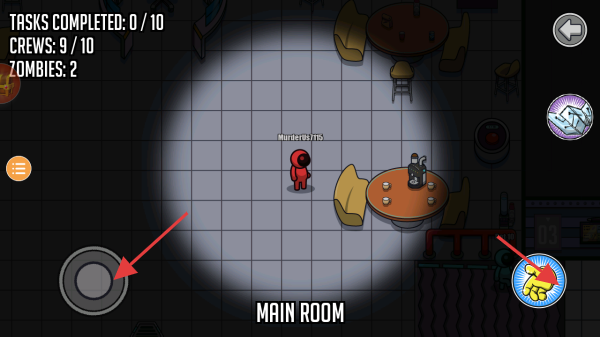 3、进入“MAIN ROOM”,使用左下角的摇杆进行移动,根据任务指引寻找目标,同时避开僵尸,完成10个任务,保护好船员(剩余9/10),坚持生存到最后,从而赢得胜利。