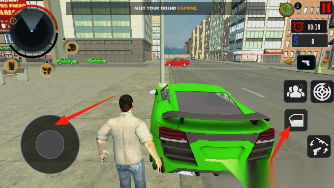 1、走进霓虹灯闪烁的城市街道,从巷子角落拿到霰弹枪,对准迎面而来的敌方车辆,扣下扳机,开启充满激情的犯罪生涯的第一战。