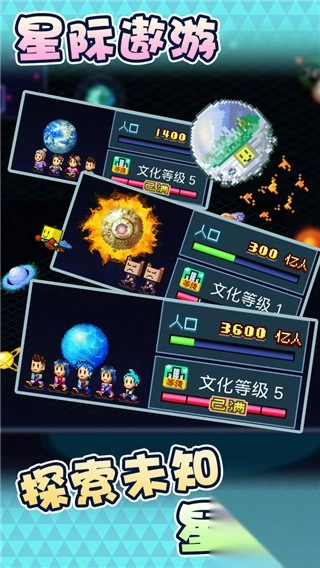 1、像素风格的宇宙世界:采用经典的开罗像素画风,细腻描绘出丰富多彩的宇宙景象。各个星球拥有独特的地貌,而可爱的开罗君形象更是栩栩如生,共同为玩家打造了一个沉浸式的宇宙探险环境。