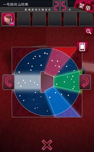 1. 轻点道具遥控器,把电池取下来。对桌子展开调查,获取手机以及三棱镜。再去查看角落里的小台子,将电池安装进去。