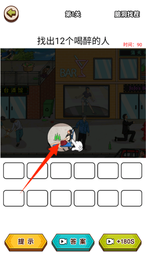 2、关卡开始后,仔细观察场景中的人物状态,成功找出全部12名醉酒目标即可通关。