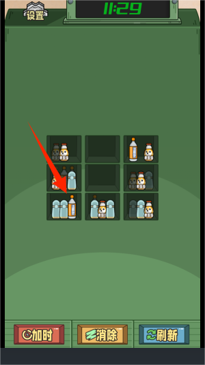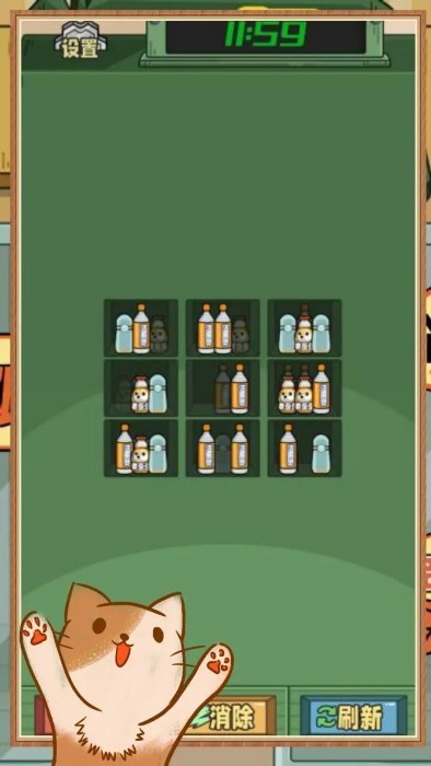 2、仔细查看货架上各式各样的玻璃容器,通过点击将三个或以上相同款式的瓶子连成一条线,就可以触发消除效果,清空这些位置。