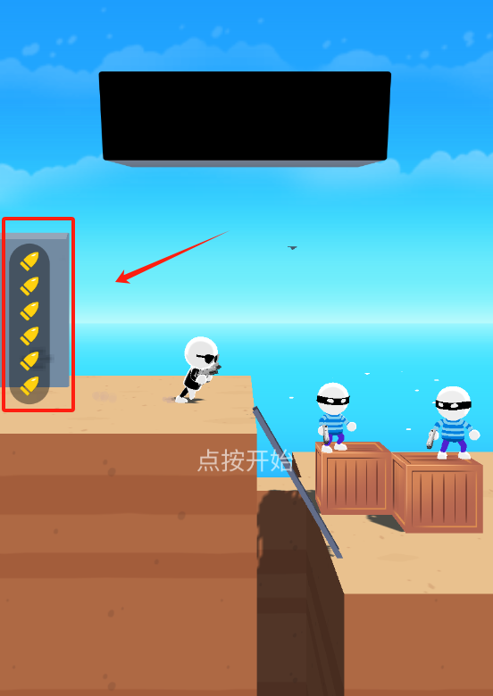 3、瞄着左下角红框里的子弹,点开始让持枪角色准备射击小偷。