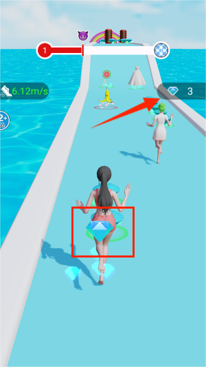 2、通过触控操作控制小女孩移动方向,沿途拾取闪闪发亮的水晶,右侧实时更新当前收集到的水晶总数。