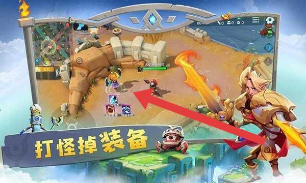 2、在战斗场景,操控角色前往箭头指向区域,参与“打怪掉装备”玩法,击败怪物获取道具。
