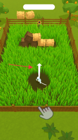 2、长按屏幕,操控角色沿箭头方向割除草坪,推进关卡。