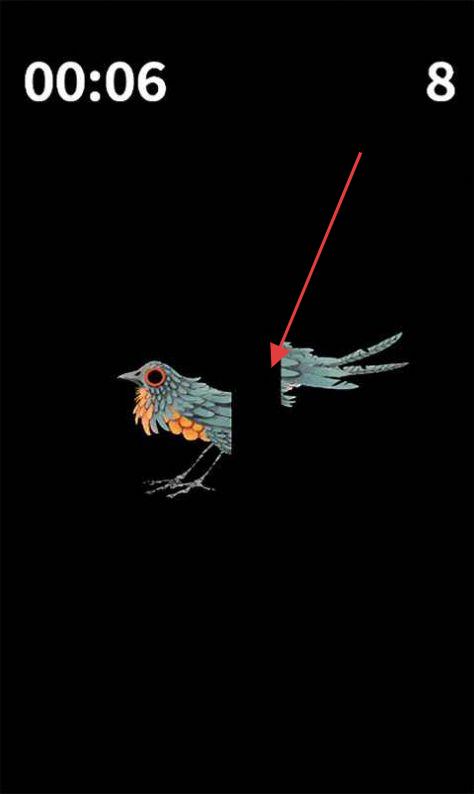 1、点击“开始移动”或播放按钮,进入关卡,面对分散的拼图碎片(如小鸟图案)。