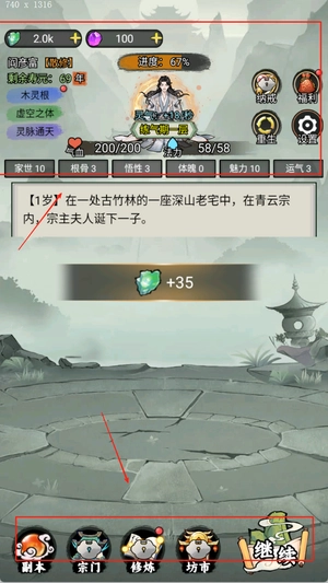 1. 游戏开局时需挑选天赋属性和出身背景,这二者会决定初始资源以及成长走向,唯有合理规划,方可迅速提升境界等级。