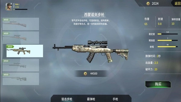 1、恐龙狙击手狩猎游戏为玩家提供了多种狙击枪,他们需要根据不同的级别选择最合适的狙击枪。