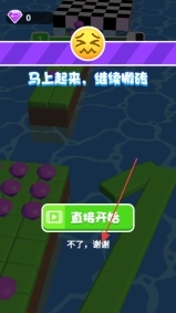2、按箭头指引方向移动,收集绿色砖块搭建路径,推进关卡。