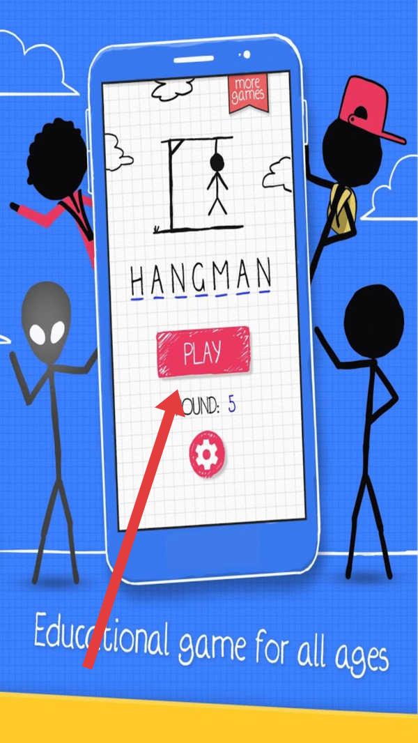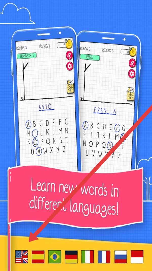 1、在语言选择页,点击箭头指向的国旗(如USA国旗),选定英语,进入【Hangman】猜词玩法。