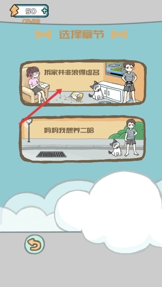 2、章节选择:进入“拆家并非浪得虚名”章节(另含“妈妈我想养二哈”章节)。