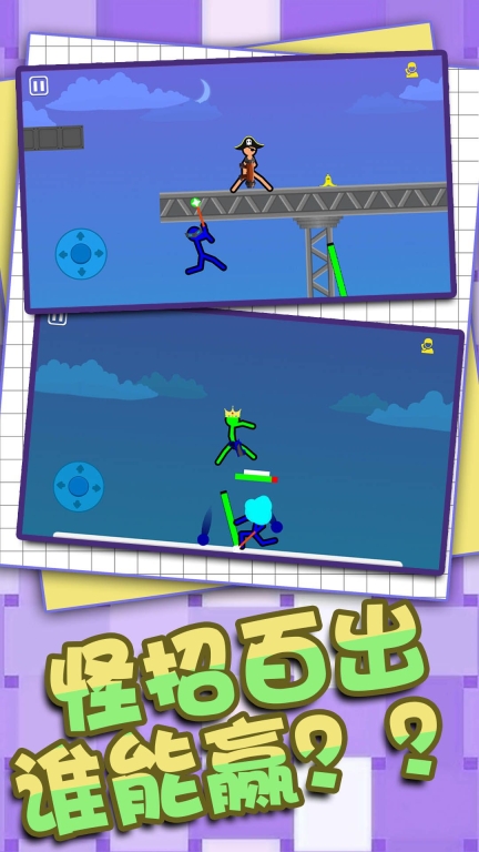 1、萌趣十足的火柴人造型,丰富多样的任务等你挑战。