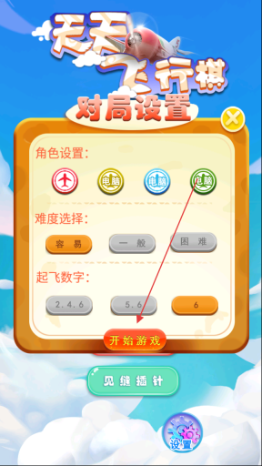 1选择“经典单机玩法”或“真人联网对战”,然后进入“对局设置”,在这里可以选择角色(玩家对阵电脑)、难度以及起飞数字。