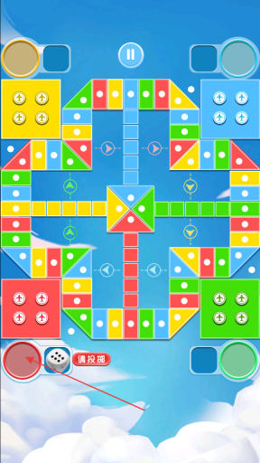 2、开局点击“请投掷”骰子,依点数移动飞机,按规则(如起飞、跳格、撞击)推进,让飞机绕棋盘抵达终点。
