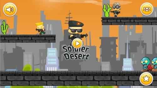 1、进入游戏后,点击主界面"Soldier Desert"开始关卡,注意右上角红框选中的组队图标,可邀请好友协同作战。