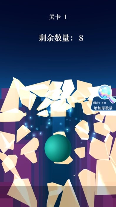 1、用手指点击屏幕任意位置发射小球,目标是击碎拦路的玻璃障碍,开辟前进道路。
