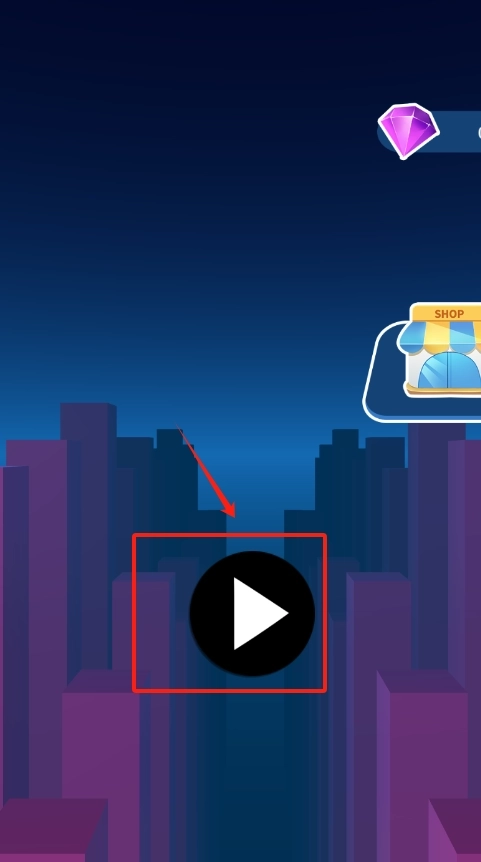 1点击红框中的黑色按钮,就是带有白色三角形的那个,就可以开始游戏了。右上角可以进入商店。