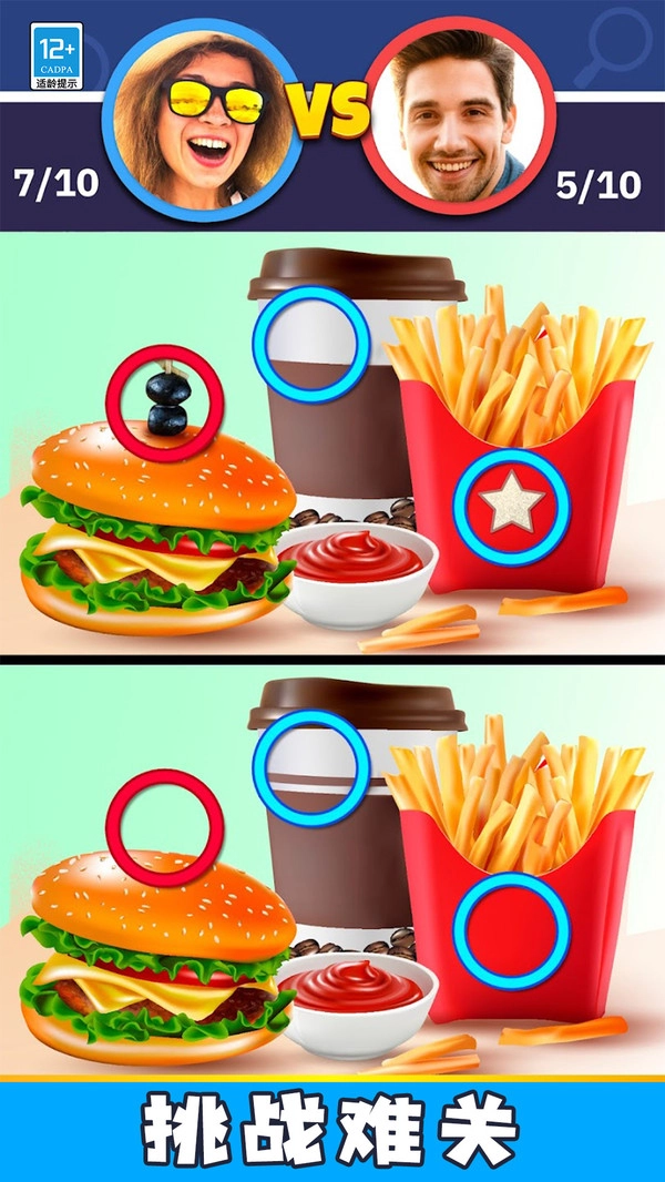 3.对战模式下与真实玩家比拼找茬速度,率先完成任务的一方获胜,十分刺激又有挑战性。