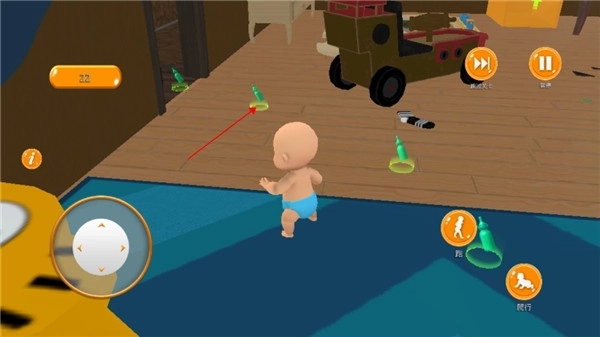 1、策略破坏与路线规划:通过虚拟摇杆移动,点击破坏家具或投掷物品,优先破坏高价值目标吸引父母注意,再潜入其他区域制造混乱。