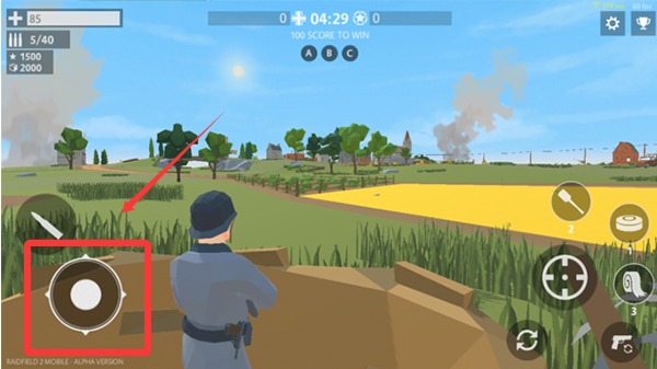 2、开始游戏后滑动左侧摇杆可以控制角色,右侧是瞄准和道具。