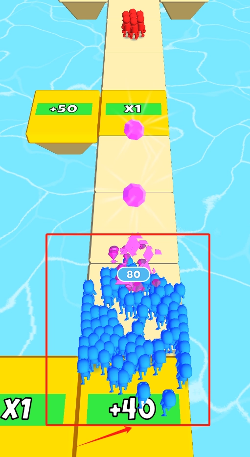 3、于跑酷路段巧妙避开红色危险障碍物,借助特殊平台的加成效果,迅速扩大队伍规模。
