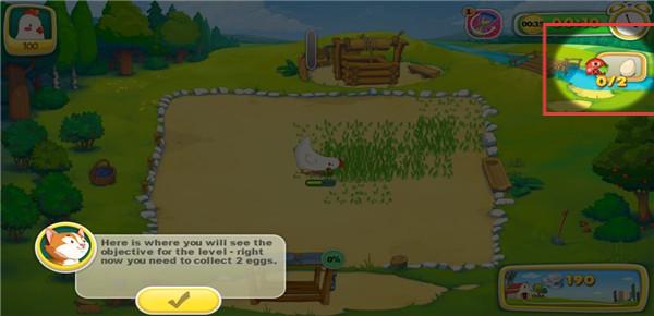 3、在这里你会看到这个关卡的目标,现在你需要收集2个鸡蛋,收集完成之后便可过关。