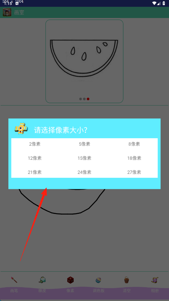 3、点击像素按钮,选择合适的像素大小,然后使用像素笔为图案添加点缀,以增强其独特效果。