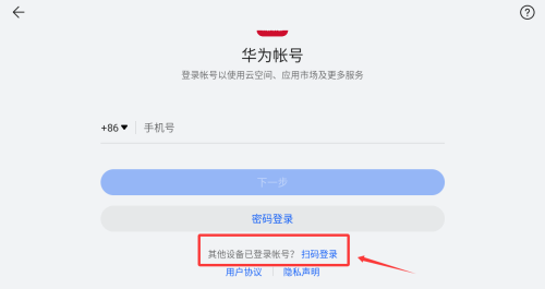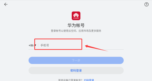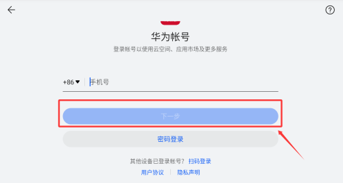 1、输入手机号后点击蓝色下一步按钮,准备登录华为账号。