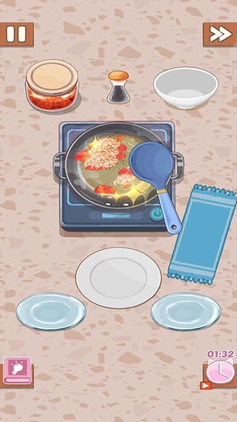 2、从切菜备料到精心摆盘,每一步都被设计成有趣的小游戏,配合着舒缓的音效和柔和的画面,让你享受到沉浸式的烹饪体验。
