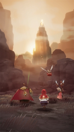 光之境手游中很多地方的场景有着很强的朦胧感,再加上远处神庙、周遭的石碑等元素的确很容易让人往《光·遇》,但深入游戏后会发现,除了这些宣传图以外的场景游戏里其实还加入了很多精灵世界的元素,有种《奥日》《光·遇》结合体的感觉;