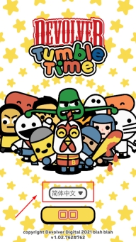 1、第一步,打开devolver滚滚乐游戏,接着点击语言按钮。