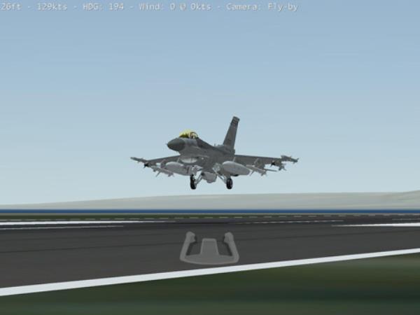 快接近跑道时,会出现高度约1300的红色引导方框。当到达引导框处,速度需保持在190左右。若速度过低,就加大油门;若速度过高,先下降高度,再拉升调整速度。因此,要在进场前就关闭油门,并放下起落架和扰流板。