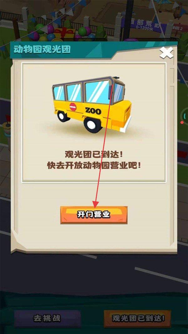 1、点击“开门营业”接待观光团,进入动物园经营界面,升级动物栖息地(如马栖息地,消耗金币提升收益)。
