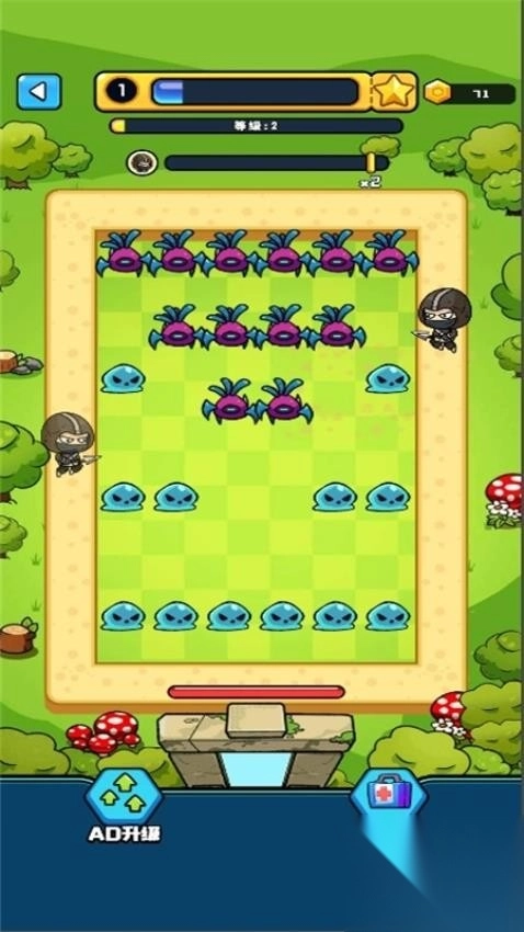 2、在装备页,用金币购买“板砖”提升基地血量,备齐后点击开战进入战斗场景中。