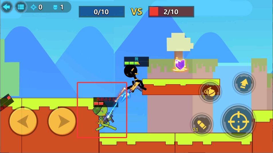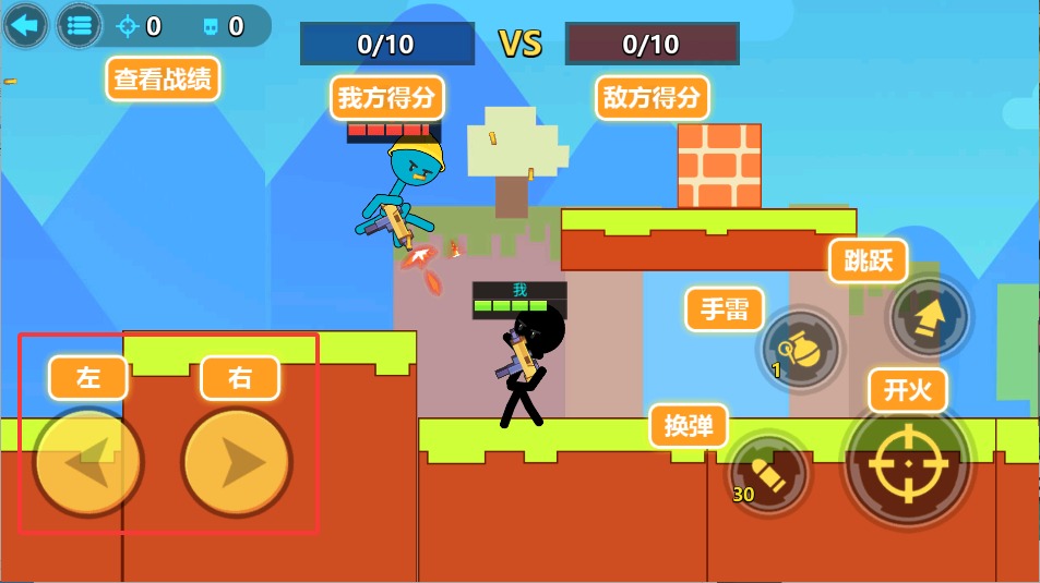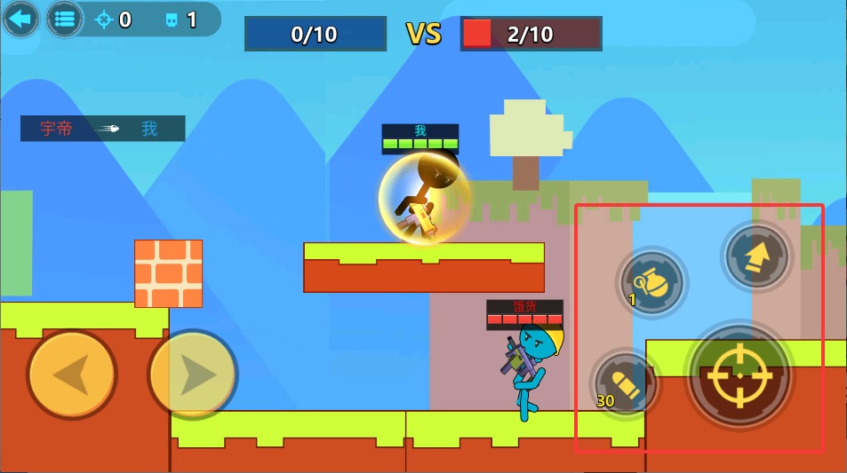 2、右侧按键分别负责射击与跳跃功能,射击时把握弹道轨迹,跳跃可跨越障碍或躲避地面攻击。