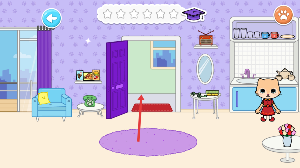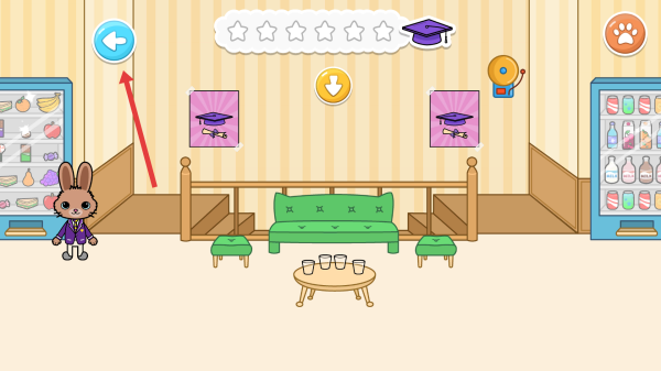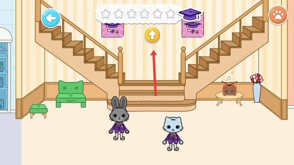 3、进入房间后,按照箭头指示点击门,探索新的区域或触发剧情,通过操控角色(小动物)进行互动,推进校园冒险。