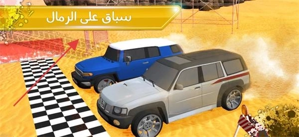 2、在选车界面“سباق على الرمال”(沙漠竞速)中,选择你喜欢的SUV,然后开始沙漠赛道。