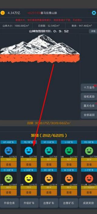 2、用采矿收益升级矿车动力系统与开采装置,解锁深层挖矿权限,同时搭配使用炸药、探测器等道具,提升稀有矿石的开采效率。