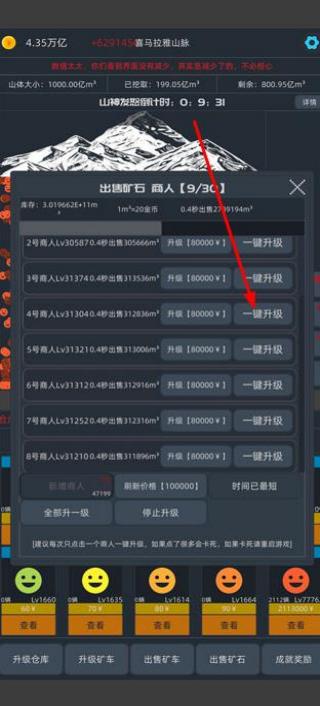 3、分析市场行情后将矿石高价出售,利用资金扩张采矿基地,雇佣工人团队分工运营,最终打造覆盖多矿区的自动化采矿帝国。