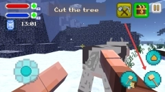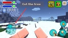 2、接取“Cut-the-tree”任务,按箭头指引,通过移动摇杆,移动角色(左侧摇杆),靠近树木,准备砍伐。