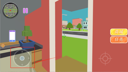 2进入室内后,首先检查红框标记的家电以获得重要线索,同时留意大门外城镇的街景,为之后的外出探索做好准备。