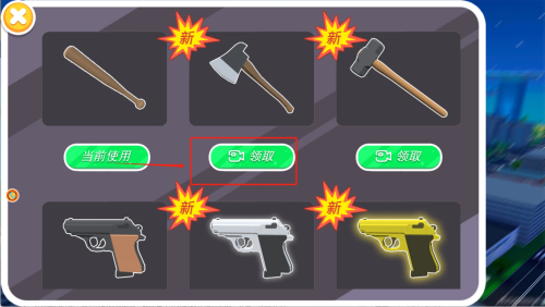 3、在武器库界面,选择标有"新"字的武器点击绿色"领取"按钮,新获得的武器会自动装备并显示"当前使用"标识。